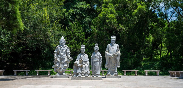 这雨伞型亭子前边的好意思娘子石雕像,便是吴平(著名的海盗头子)的妹妹。大家看她一手扶着元宝,一手抓着宝剑,一副看守金银的步地。神话摸摸她手上的元宝,就会给你带来“财气”呢。