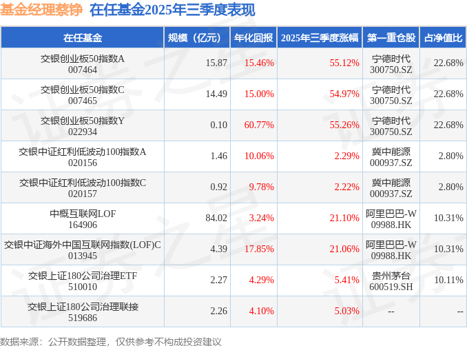 交银上证180公司责罚ETF现任基金司理为邵文婷 蔡铮。其中在职基金司理蔡铮已从业12年又272天,2025年2月27日崇拜接办管理交银上证180公司责罚ETF,任职时代累计答复为13.28%。当今还管理着9只基金居品(包括A类和C类),其中本季度发达最好的基金为交银创业板50指数Y(022934),季度净值涨幅为55.26%。