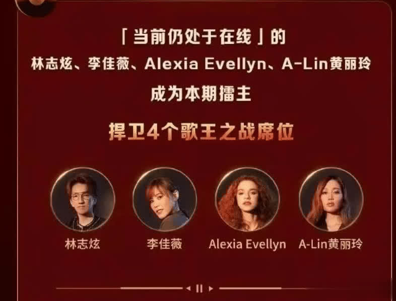 而最终参预解围赛的守擂歌手:林志炫、李佳薇、艾莉西亚、黄丽玲。