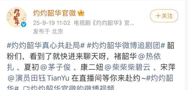 而剧的爆火天然跟几位主演是离不开关连的,细细看剧中的几位主演每一位演技都很在线,尤其是两位女演员,完全把脚色给演活了。 这不,趁着剧热度正高招的时代,连忙开了一场“灼灼韶华微博追剧团”,邀请了几位主创演员到现场,开了一个线上追剧的互动四肢。