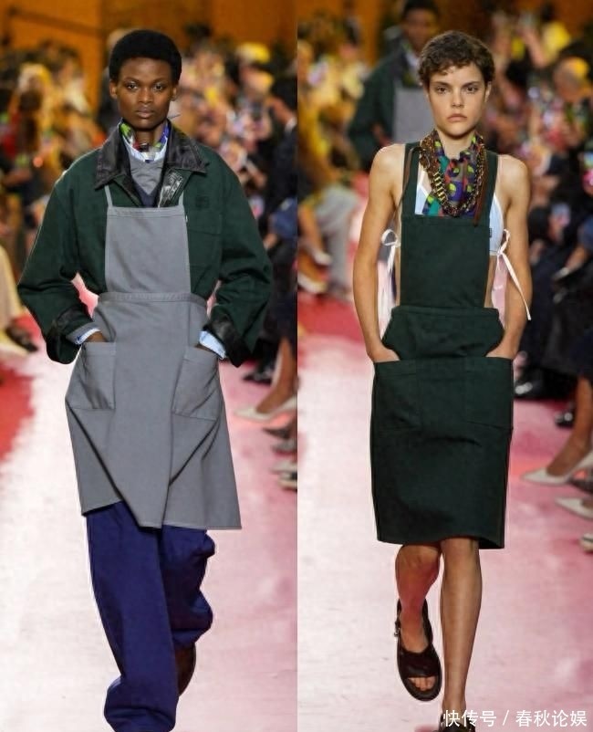 只见模特们一个个嘴歪冷脸,长相清奇,而更吸睛的,即是他们身上衣服的新品“围裙”,天然说挂上了糜掷的牌子,可照旧被网友吐槽为:像菜市集的大妈。