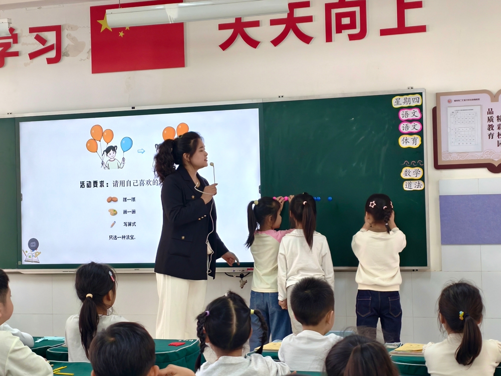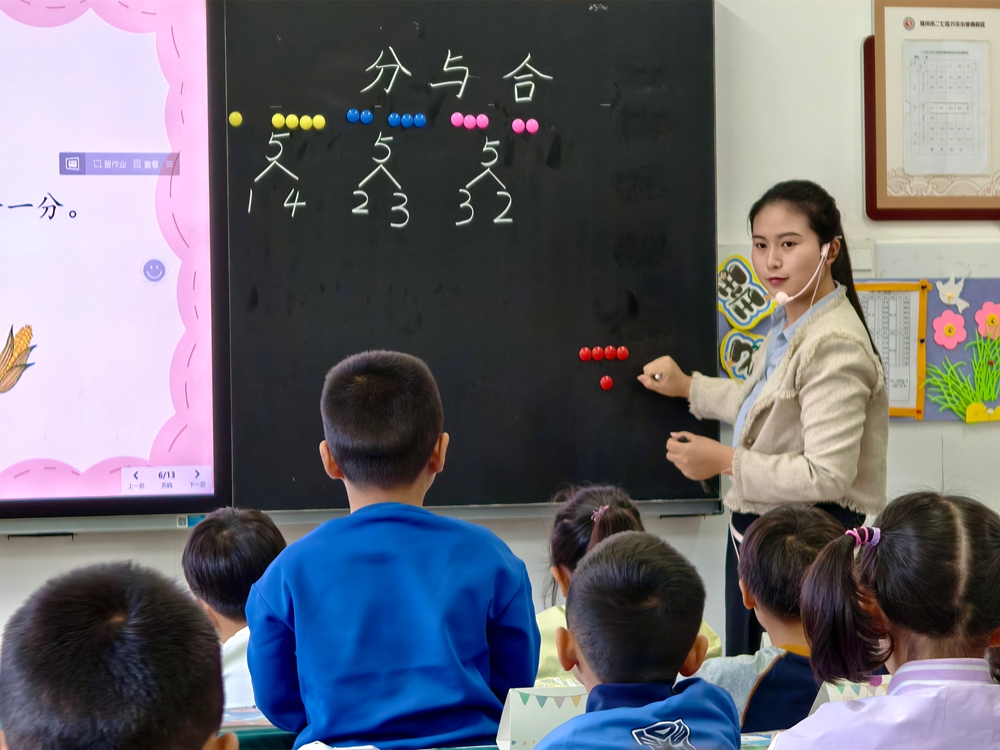 石婧儒真挚捏教《分与和》,顺心探索学问的过程和政策,让学生在起首操作、自主探索中获得学问。学生在匡助小熊贬责数学问题的情境中,体验到数学学习的豪迈。